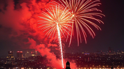 新年的钟声悠悠敲响,时光的车轮又留下一道深深的印痕。在这辞旧迎新的时刻,璀璨的烟花成为了夜空中最耀眼的主角,将新年的喜悦与祝福尽情播撒。 在这绚烂的烟花下,人们仿佛忘记了过去一年的疲惫与烦恼,心中只充满了对新一年的美好期许。老人望着天空,脸上洋溢着幸福的笑容,仿佛在回忆着往昔的岁月,又在憧憬着儿孙们新一年的顺遂;年轻人则相互依偎,许下新年的心愿,希望爱情甜蜜,事业有成;孩子们在烟花的映照下欢快地奔跑着,手中的烟花棒画出一道道美丽的弧线,他们的笑声清脆而响亮,如同银铃般在夜空中回荡。 烟花,是新年的使者,它用绚丽的色…