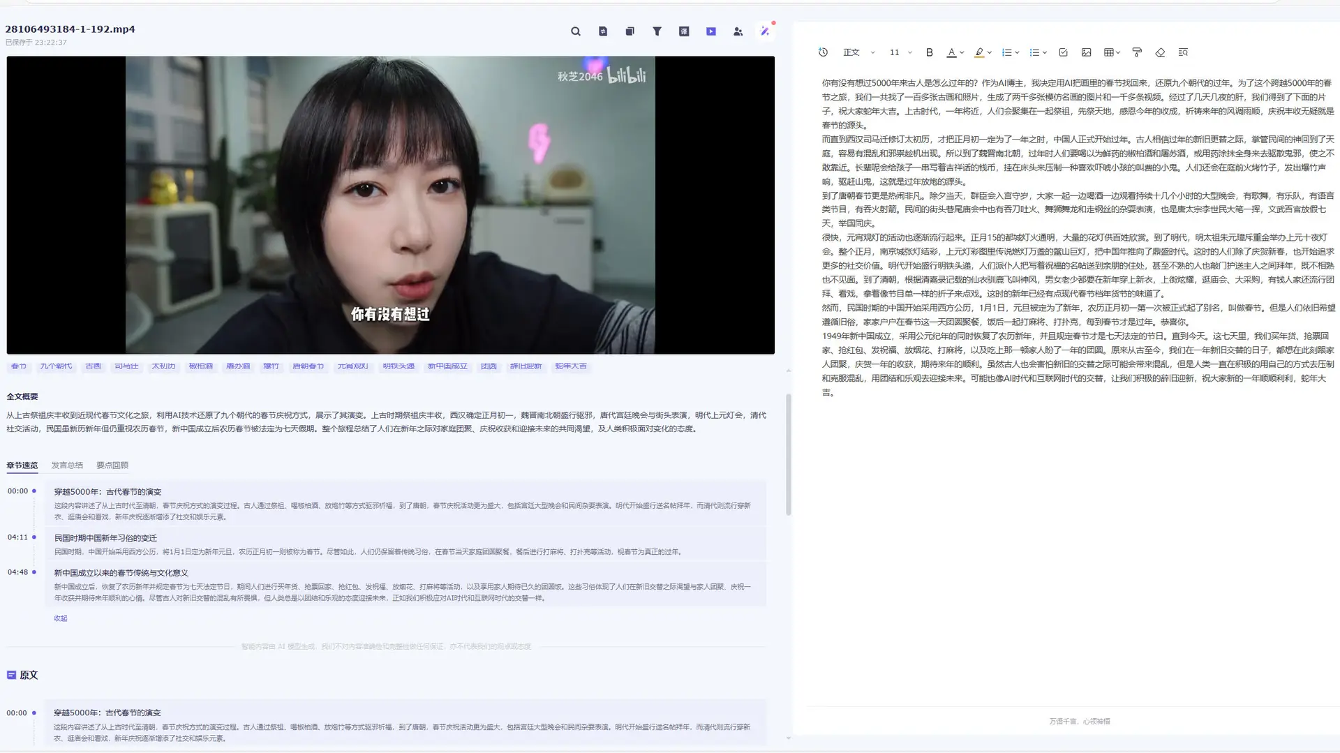 通义听悟:使用“播客链接转写”模块,根据链接提取文件并进行智能分析